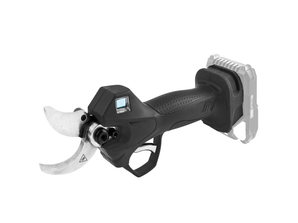 Oceľové nože majú nastaviteľné otváranie na 35 mm alebo 25 mm, aby ste pri tenších konároch pracovali rýchlejšie a efektívnejšie. Vstavaný displej zobrazuje aktuálne nastavenie nožov, počet vykonaných rezov a stav batérie, čo výrazne zvyšuje komfort práce.