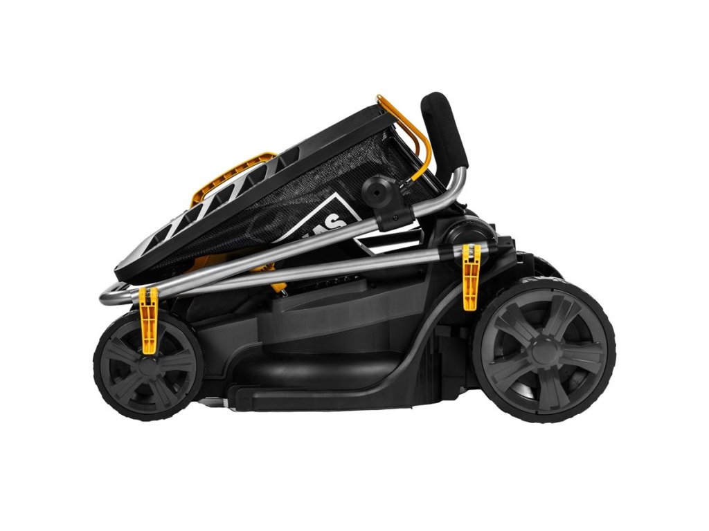 Kosačka štartuje jednoducho jedným tlačidlom a vďaka ergonomickým, výškovo nastaviteľným riadidlám s mäkkou penovou rukoväťou je práca pohodlná aj pri dlhšom kosení. Skladacia rukoväť a praktické madlo pri motore zaisťujú jednoduchý transport aj uskladnenie.