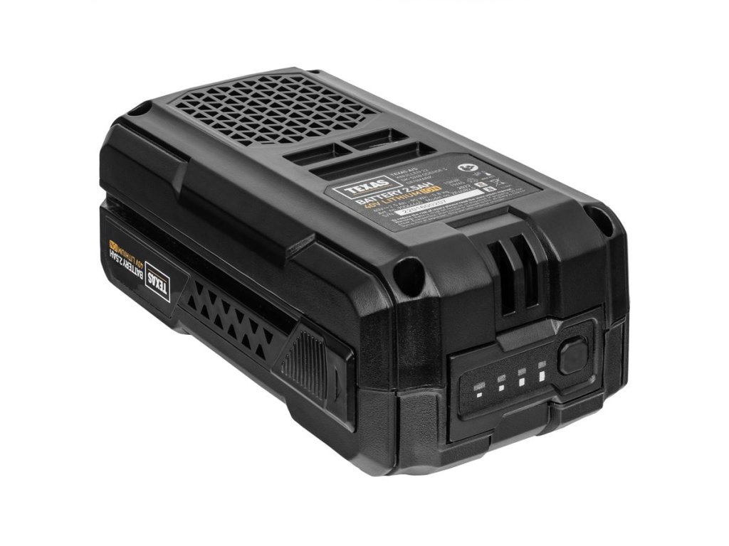 Akumulátorová batéria TEXAS 40V / 2,5 Ah je ideálnym zdrojom energie pre zariadenia série TEXAS 40V, kde poskytuje spoľahlivý výkon, nízku hmotnosť a rýchle nabíjanie. Je vhodná pre bežné aj náročnejšie práce v záhrade a kompatibilná s modelmi GTX4000, HTX4000, CSX4000, Razor 4200Li a Razor 4220TR-Li.