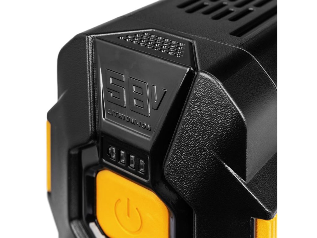 Vďaka robustnej kapacite výrazne predlžuje čas práce na jedno nabitie, čo oceníte pri veľkých plochách či intenzívnom používaní. Batéria je kompatibilná so všetkými zariadeniami zo série Texas 58 V a jej úplné nabitie trvá približne 2 hodiny. Pevná konštrukcia a Li-ion technológia zabezpečujú dlhú životnosť, spoľahlivosť a minimálne straty výkonu.