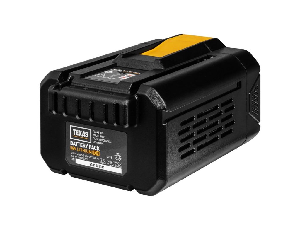 Vďaka kvalitným článkom Samsung ponúka stabilný výkon, dlhú životnosť a spoľahlivú prevádzku aj pri náročnom zaťažení. Batéria je kompatibilná so všetkými zariadeniami zo série Texas 58 V a jej plné nabitie trvá približne 2 hodiny.