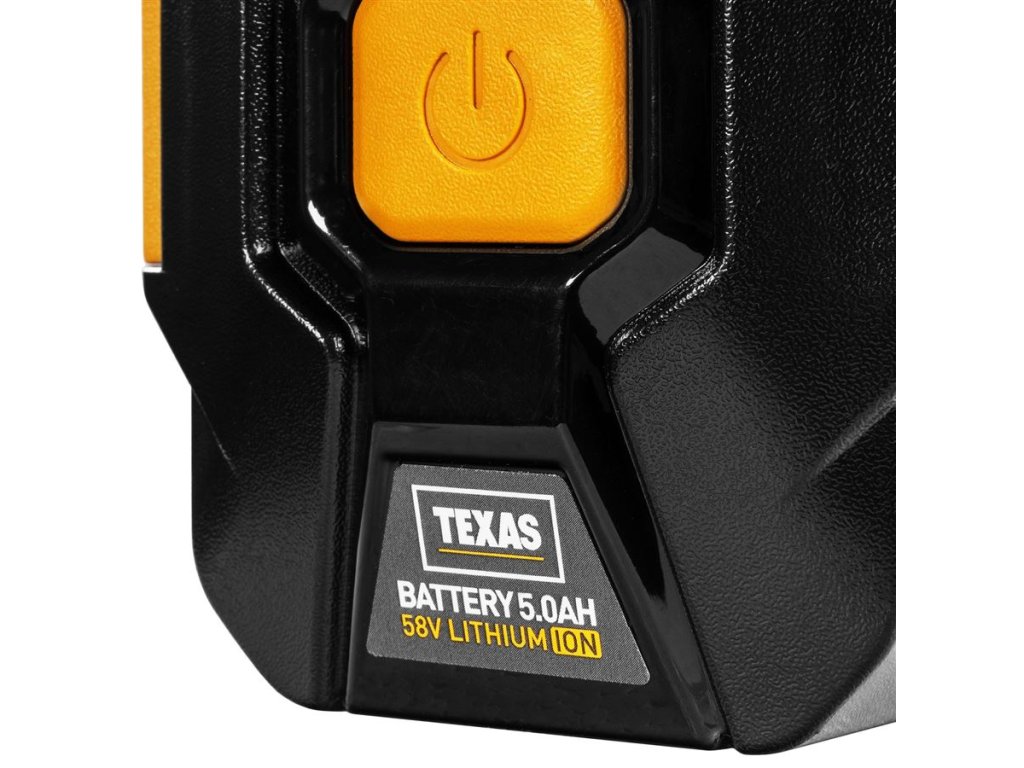 Najvýkonnejšia 58 V batéria TEXAS s kapacitou 5,0 Ah je určená pre používateľov, ktorí potrebujú maximálny výkon a najdlhší možný pracovný čas. Ideálna je najmä pre fúkače lístia, reťazové píly a aku kosačky, kde poskytuje výrazne vyššiu výdrž ako menšie batérie.