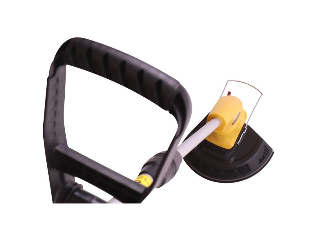 S rýchlosťou otáčania 9000 ot./min a pracovnou šírkou 17 cm dokáže vyžínač rýchlo pokosiť menšie plochy aj úzke priestory okolo stromov, záhonov či chodníkov. Na jedno nabitie dokáže pracovať približne 20 minút, pričom batéria sa nabije len za 1 hodinu.