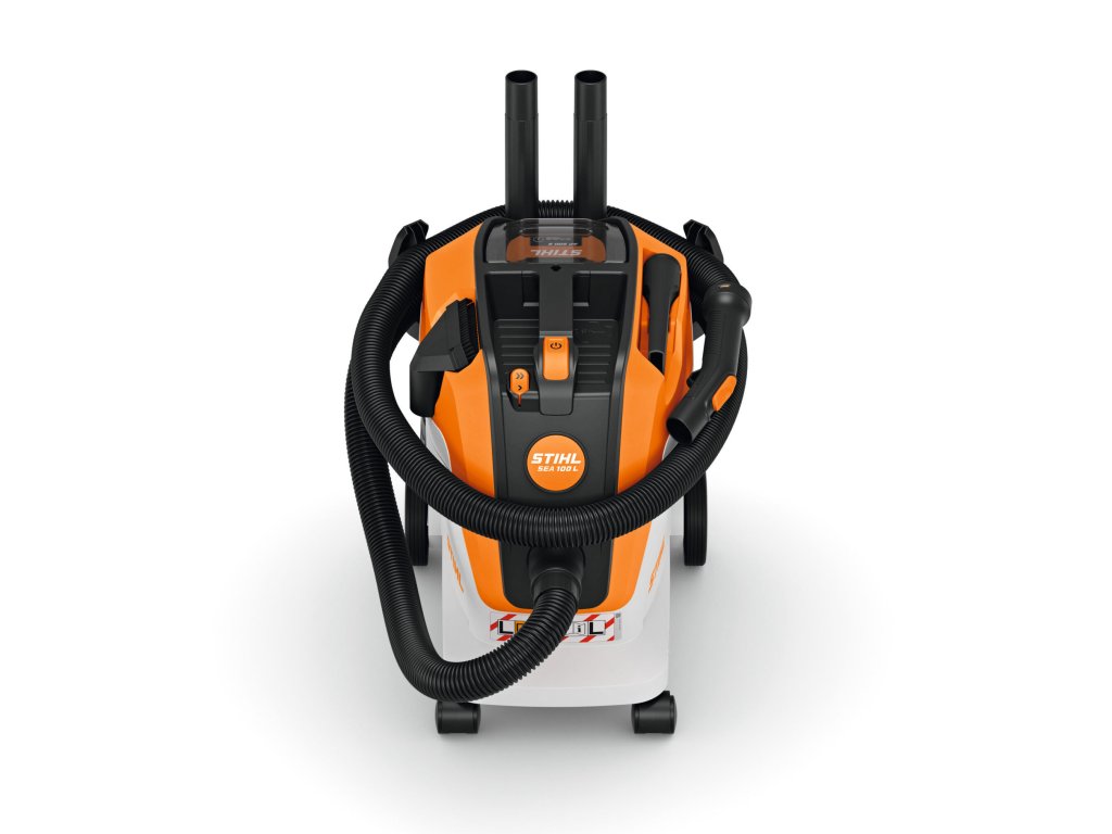 Akumulátorový vysávač STIHL SEA 100 L je ideálny pre všetkých, ktorí hľadajú výkonné a prenosné riešenie na suché aj mokré vysávanie. Vďaka prevádzke na batériu zo systému STIHL AP ponúka maximálnu flexibilitu a mobilitu, ideálnu pre remeselníkov, detailerov áut alebo na čistenie v garáži.