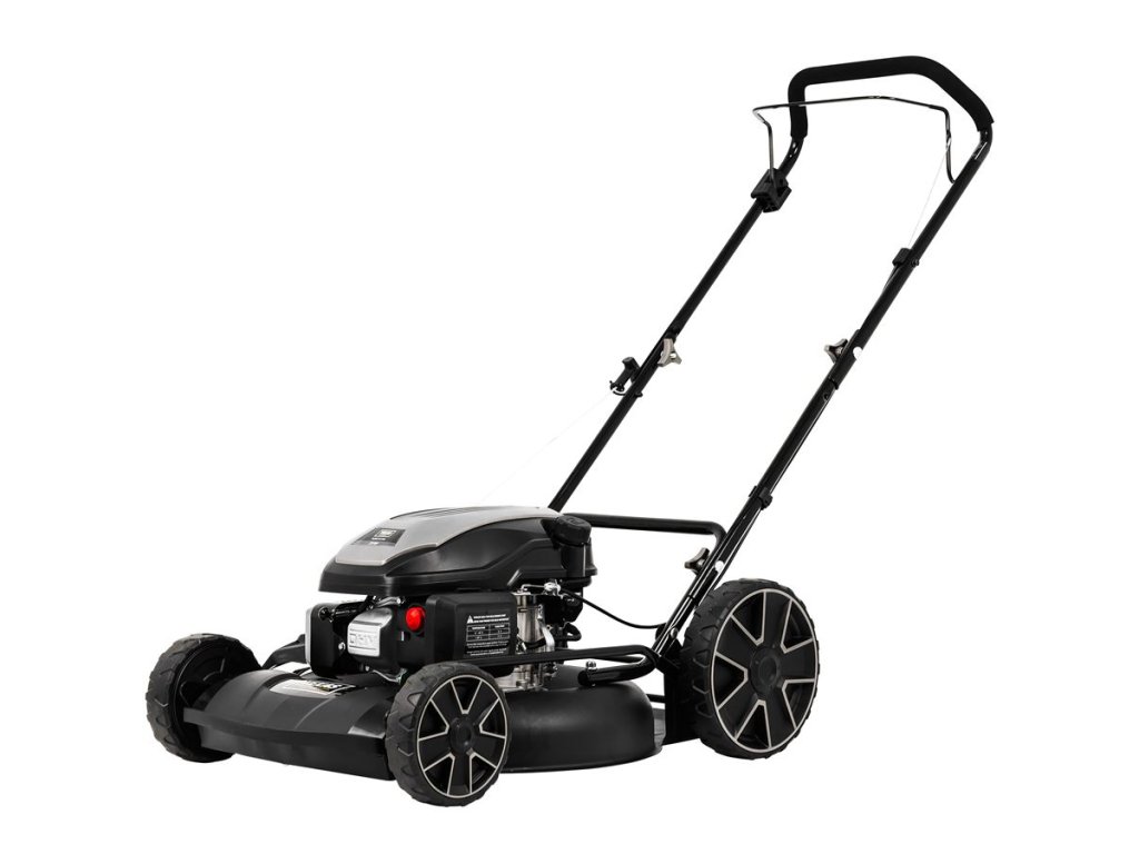 Pevný oceľový kosiaci štít dodáva odolnosť a chráni kosačku pred nárazmi kamienkov. Nastaviteľné riadidlá s pohodlným úchopom zabezpečujú komfort pri každom kosení.
