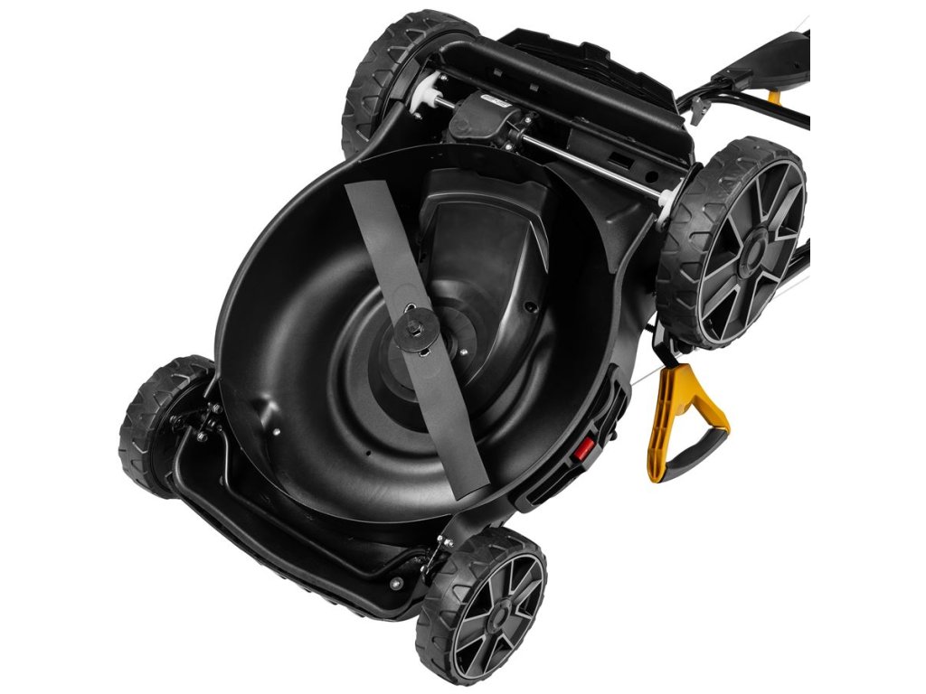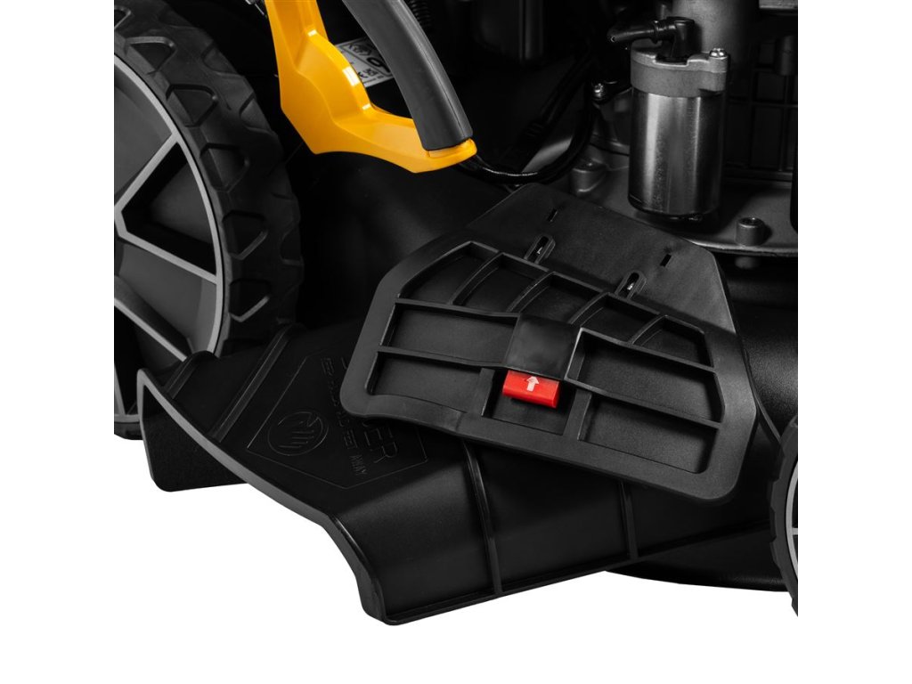 Robustný oceľový štít zaručuje dlhú životnosť a odolnosť voči nárazom kamienkov. Vďaka hmotnosti 37,5 kg je kosačka stabilná, no stále dobre ovládateľná.