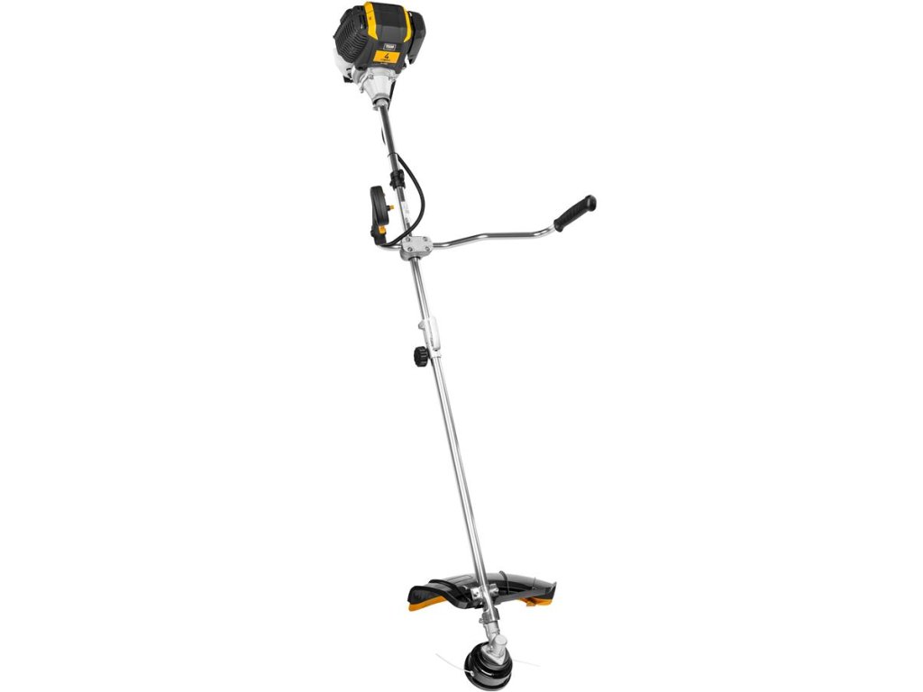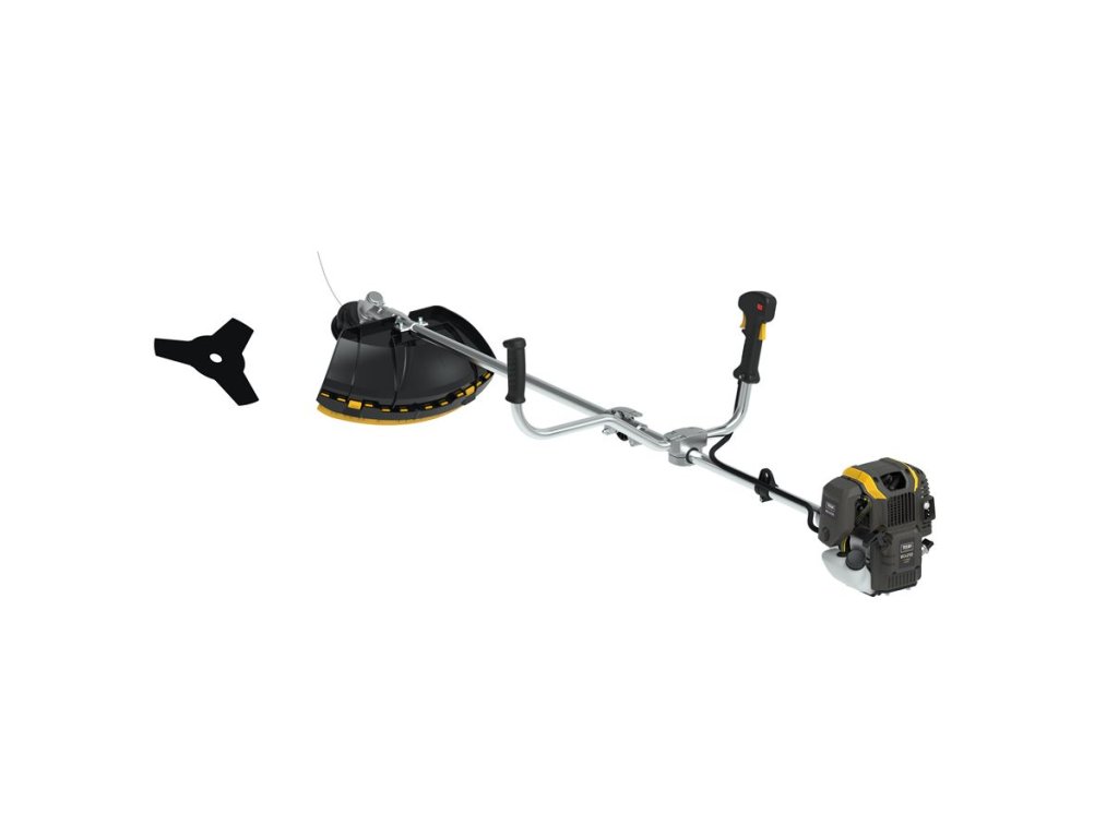 Benzínový krovinorez TEXAS BC425D je výkonný a spoľahlivý stroj pre každého, kto potrebuje zvládnuť intenzívne vyžínanie okolo domu, na pozemkoch alebo v náročnejšom teréne. Je poháňaný robustným 4-taktným motorom TEXAS s objemom 42,5 cm³, ktorý pracuje pri nižších otáčkach a ponúka tichšiu, plynulejšiu a kultivovanejšiu prevádzku než bežné 2-taktné motory. Maximálny výkon 1,25 kW pri 6500 ot./min. poskytuje dostatok sily na strunové kosenie aj prácu s nožmi.