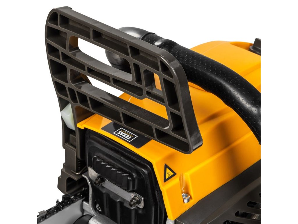 Benzínová reťazová píla TEXAS TS4518 je praktický a spoľahlivý pomocník pre rezanie palivového dreva aj údržbu stromov okolo domu. Silný 2-taktný motor s objemom 45 cm³ v kombinácii s 45 cm lištou TEXAS ponúka vysoký výkon a dostatok záberu aj pri hrubších kusoch dreva. Rýchlosť reťaze 21 m/s zabezpečuje rýchle a plynulé rezanie bez zbytočnej námahy.