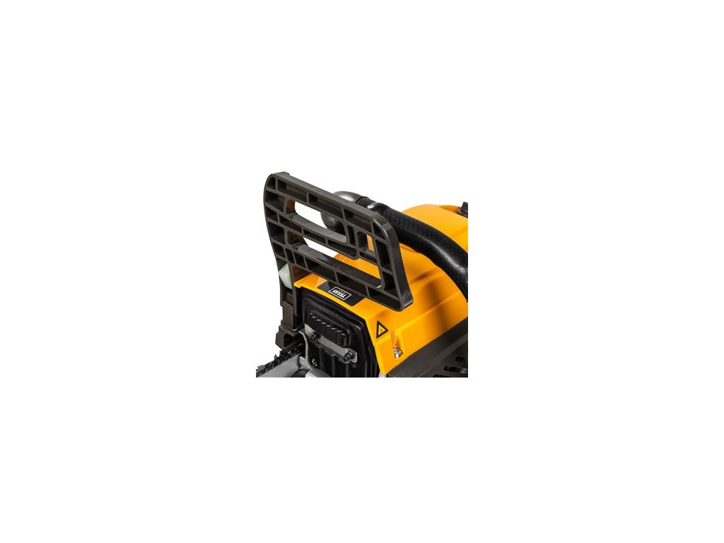 TEXAS TS4518 je užívateľsky príjemná benzínová reťazová píla, ktorá vám s výkonným motorom s objemom 45 cm3 a lištou TEXAS 20 (45 cm) ľahko pomôže s väčšinou píliacich úloh na záhrade. Táto výkonná reťazová píla má rýchlosť reťaze 21 m/s, takže pri pílení palivového dreva alebo pri vyrezávaní stromov získate efektívneho pomocníka. TS4518 má hmotnosť 6,8 kg a má tiež niekoľko užívateľsky prívetivých funkcií, ktoré vám pomôžu, keď idete píliť. Karburátor má automatický sýtič, ktorý vám pomôže naštartovať reťazovú pílu v chladnom počasí, a keďže má aj „Easy Start“, pocítite tiež menší odpor v štartovacom lanku. Vyskúšajte silnú motorovú pílu od TEXAS na každodenné použitie v záhrade. Charakteristika a technické údaje: Typ motora: 2-takt Objem zdvihu: 45 ccm Objem nádrže: 0,5 litra Výkon: 1,8 kW Výkon: 11000 ot./min. Štartér: Spätný ráz Palivo: benzín s olejom Rýchlosť reťaze: 21 m/s2 Lišta: Texas Dĺžka lišty: 45 cm Reťazová brzda: Áno Mazanie reťaze: Automaticky Nastavenie reťaze: Vyžaduje náradie Kapacita reťazového oleja: 0,24 litra LWA zaručené: 113 dB Úroveň vibrácií zadnej rukoväte: 6,027 m/s2 Úroveň vibrácií prednej rukoväte: 5,650 m/s2 Hmotnosť: 6,8 kg TEXAS je 100% dánska rodinná firma, ktorá vyrába záhradnú techniku od roku 1960. Všetko to začalo so záhradnými kultivátormi, no dnes sa sortiment rozšíril na všetky typy motorových záhradných strojov (elektrický, batériový a benzínový pohon). Hrdé tradície sa začali v továrni v Dánskom Odense, kde dodnes sídli. TEXAS vlastní 2 továrne, ktoré vyrábajú väčšinu našich záhradných strojov. To dáva plnú kontrolu nad vývojom, kvalitou a kontrolou, ako aj zodpovednú a modernú výrobu.Dodatočné parametre