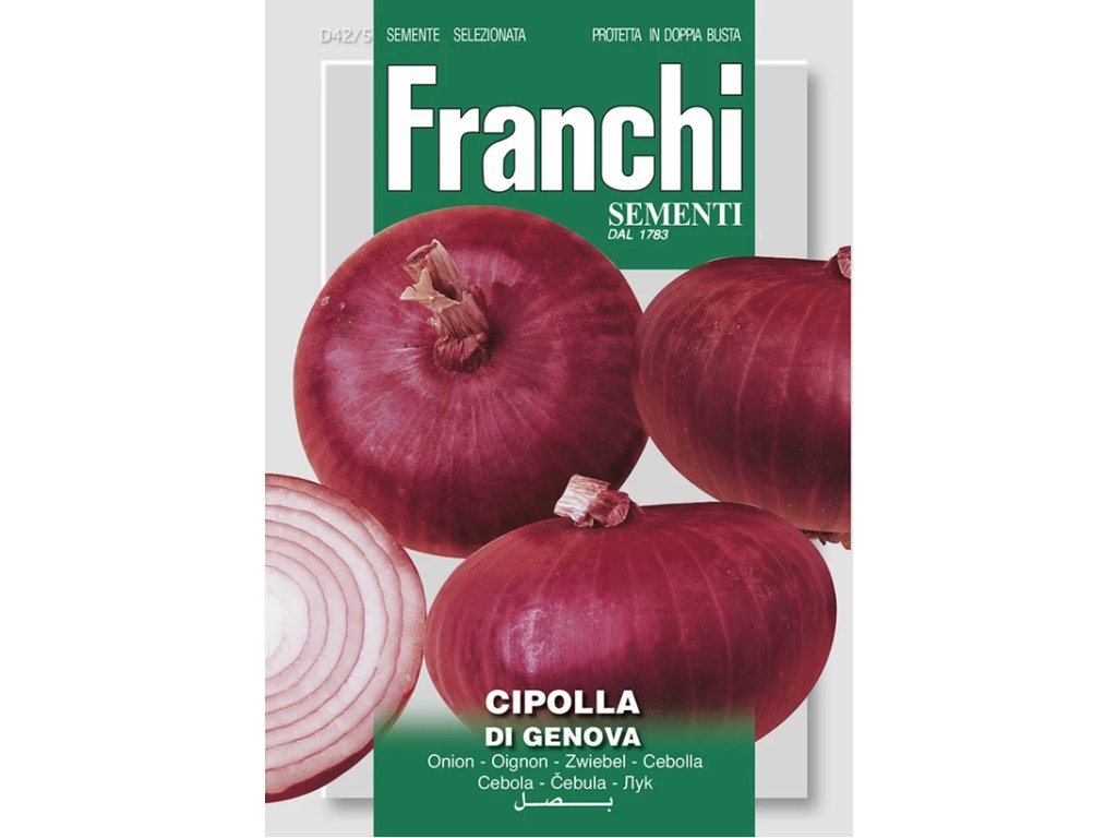 Cibuľa Di Genova je stredne skorá odroda, ktorá vytvára okrúhle, mierne sploštené červené cibuľky s jemnou a konzistentnou dužinou. Odroda je známa svojou výraznou chuťou, ktorá je vhodná na čerstvé šaláty, prípravu cibuľových pást alebo ako doplnok do teplých jedál. Pevné plody sa dobre skladujú a zachovávajú si kvalitu počas celého zberového obdobia.