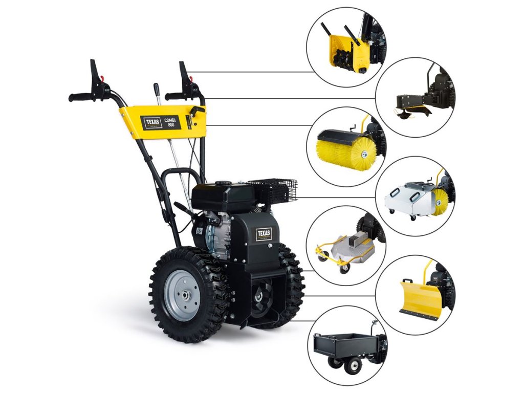 TEXAS Combi 800B Basic je univerzálny multistroj navrhnutý pre celoročnú údržbu pozemku. Vďaka širokej ponuke príslušenstva ho možno využiť na zametanie, odpratávanie snehu, frézovanie, kosenie alebo prepravu materiálu.