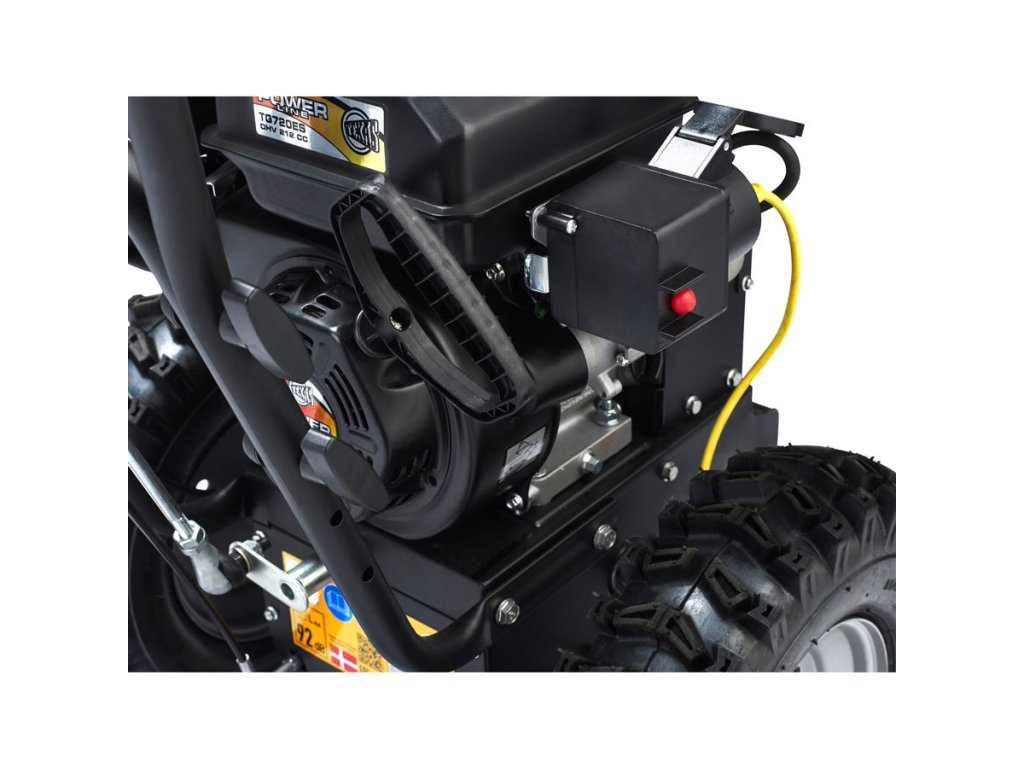O pohon sa stará 4-taktný benzínový motor Texas TG725S s objemom 212 cm³ a výkonom 4,0 kW. Model TGE je vybavený elektrickým štartérom 230 V, ktorý umožňuje jednoduché naštartovanie stlačením tlačidla – ideálne riešenie počas chladných zimných rán. K dispozícii je aj klasický ťahací štartér.