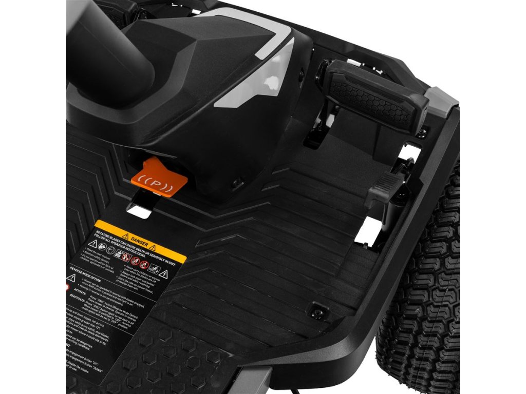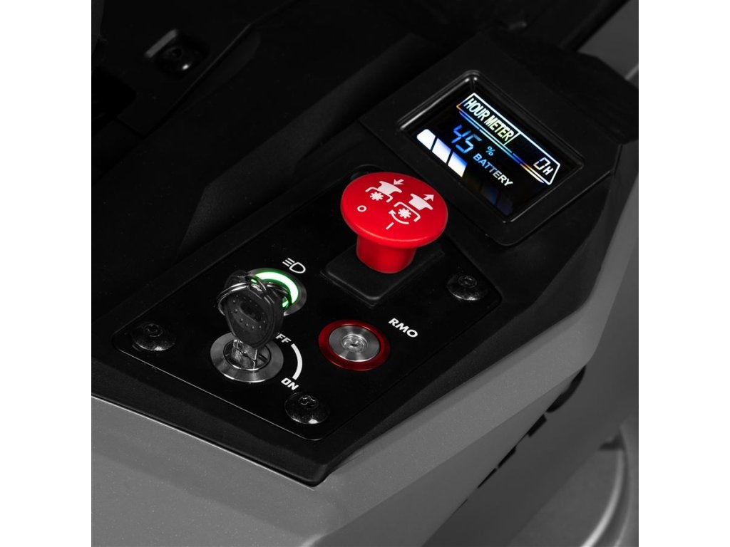 Pohodlie pri práci je na najvyššej úrovni. Rider má komfortné nastaviteľné sedadlo s vysokou opierkou, prehľadný ovládací panel priamo v dosahu ruky a predné halogénové aj LED svetlá na prácu za šera. Praktická priehradka vedľa sedadla poslúži na nápoje, kľúče či telefón.