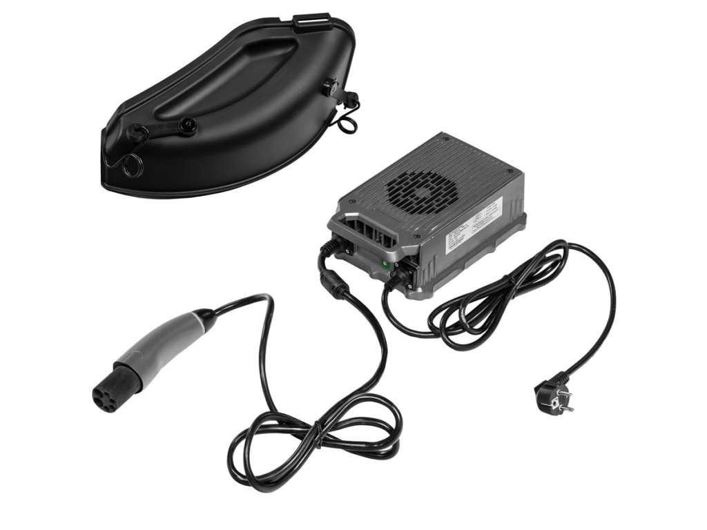 Nabíjačka je súčasťou balenia. Rider je určený na rovné až mierne svahovité pozemky s maximálnym sklonom 12°.