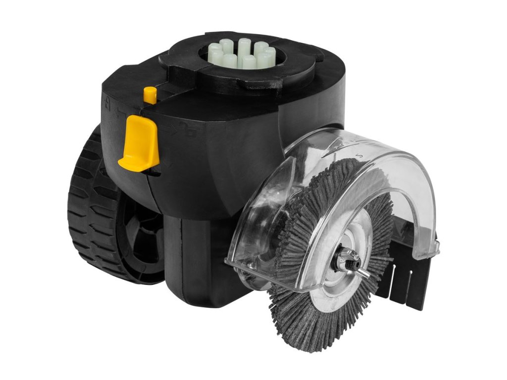 1️⃣ Široký multikefový valec (šírka 19 cm) – vhodný na rovné povrchy (dlaždice, drevené a kompozitné terasy). Nylonové kefy sú šetrné a nepoškriabu povrch.