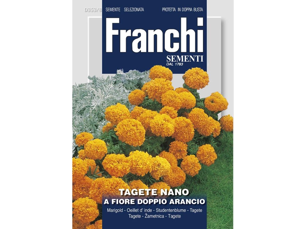 Aksamietnica nízka – ORANŽOVÁ je obľúbená jednoročná kvetina, ktorá dorastá do výšky približne 30 cm. Vyniká hustými, plnými kvetmi výraznej oranžovej farby, ktoré rozžiaria každý záhon aj okraje chodníkov.