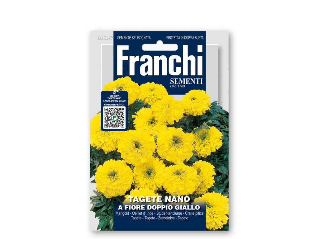 Aksamietnica nízka – žltá (Tagetes patula L., odroda Fiore doppio giallo) je obľúbená jednoročná okrasná rastlina, ktorá dorastá do výšky približne 30 cm. Rastlina vytvára kompaktné kríky bohato obsypané plnými, žiarivo žltými kvetmi, ktoré sú výrazným dekoratívnym prvkom počas celej sezóny.
