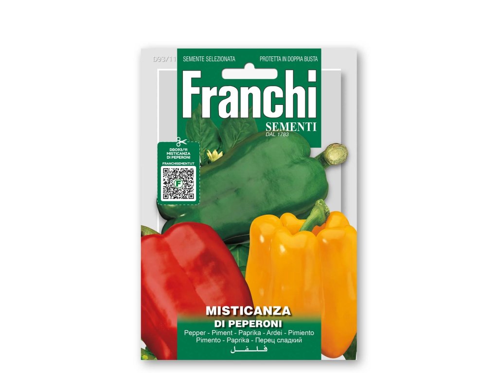 Zmes paprík Franchi je kombinácia troch stredne skorých odrôd sladkej papriky, ktoré sa výborne dopĺňajú chuťou, tvarom aj využitím v kuchyni. Zmes obsahuje odrody Yolo Wonder, Giallo d’Asti a Quadrato d’Asti Rosso, vďaka čomu získate pestrú a hodnotnú úrodu z jedného balenia.