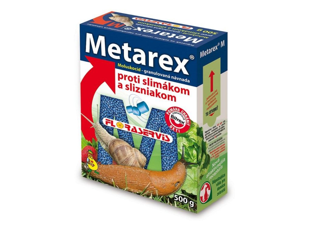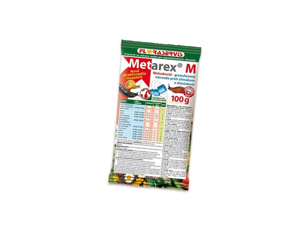 Metarex M je účinný granulovaný návnadový prípravok určený na hubenie slimákov a slizniakov v záhradných plodinách, zelenine a okrasných rastlinách. Obsahuje aktívnu látku metaldehyd (2,5 % hmot.), ktorá pri konzumácii spôsobuje úhyn škodcov.