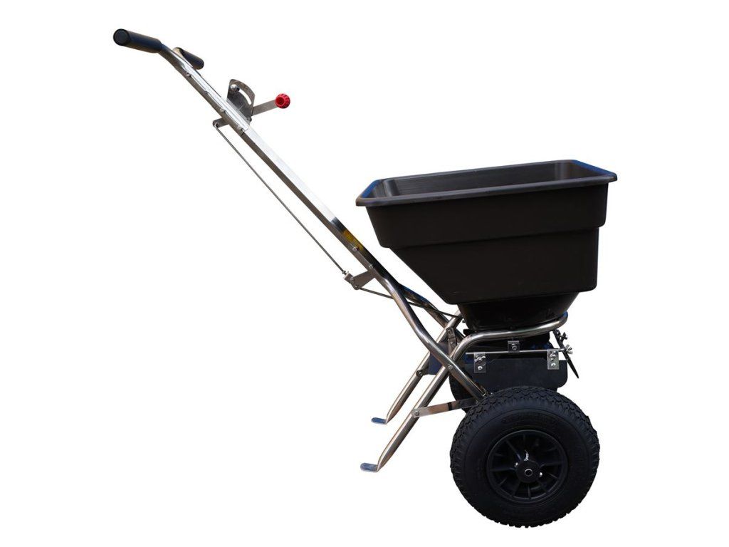Veľká 58-litrová plastová nádoba umožňuje pracovať dlhšie bez častého dopĺňania materiálu. Odstredivý systém zabezpečuje rovnomerné rozmetanie do šírky až 3 metre, čím výrazne skracuje čas práce.