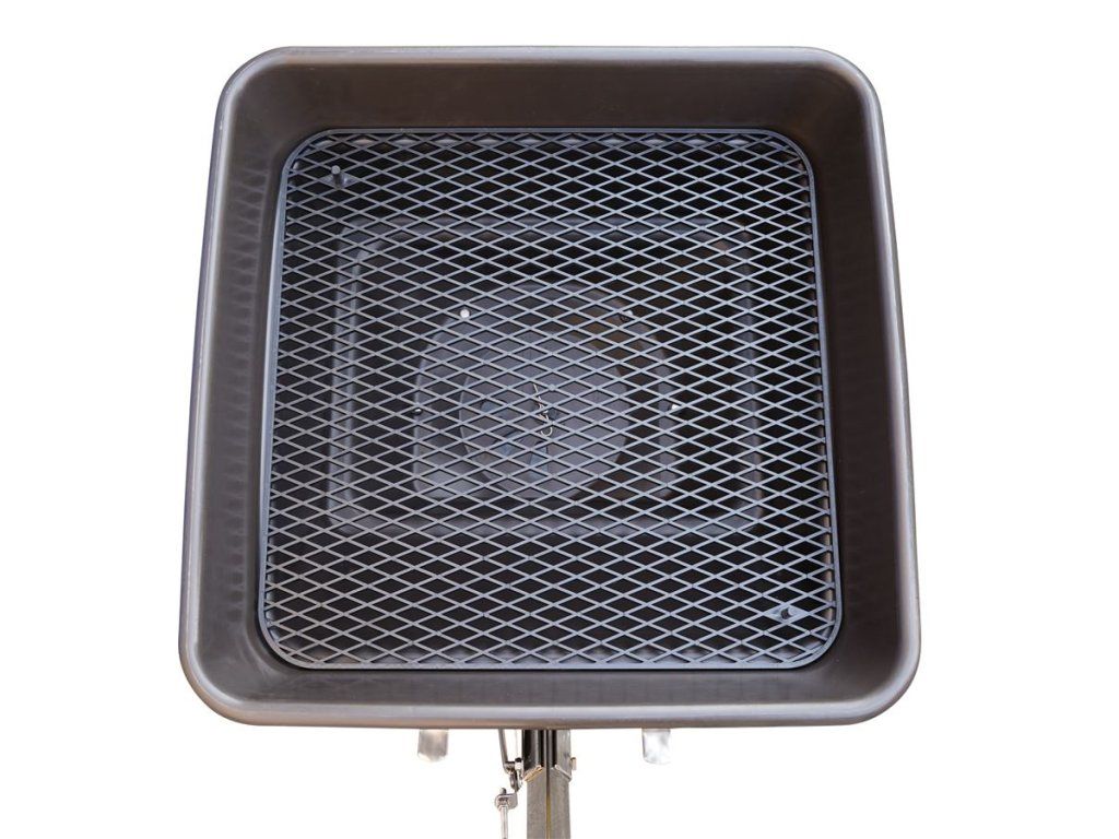 Veľké pneumatické gumené kolesá zabezpečujú stabilitu a dobrú trakciu aj na klzkom alebo nerovnom povrchu. Súčasťou balenia je aj ochranný kryt, ktorý chráni obsah nádoby pred vlhkosťou a dažďom.