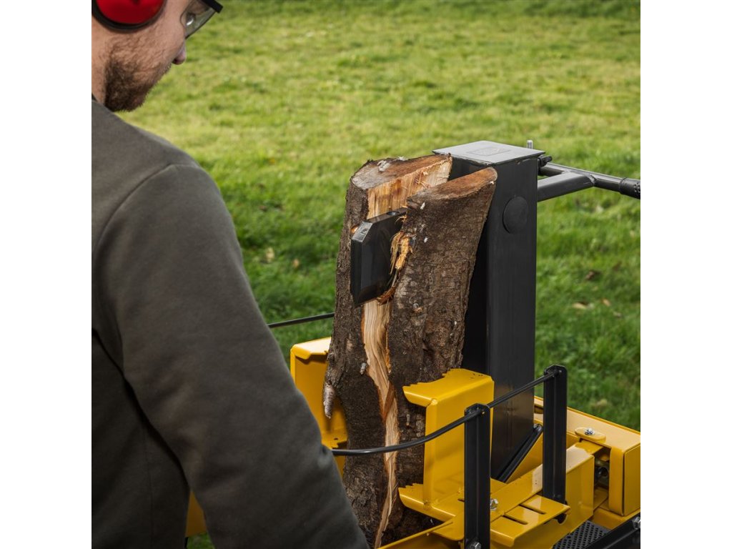 Výkonný elektrický motor 3000 W (400 V) poskytuje spoľahlivý chod bez výkyvov výkonu. Pomocou krídlovej skrutky môžete nastaviť dĺžku zdvihu piestu podľa veľkosti polena, čo zrýchľuje pracovný cyklus (cca 15 sekúnd). Návrat piestu trvá približne 4 sekundy.
