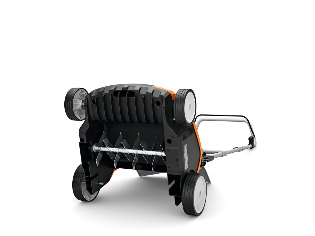 Vďaka ľahkému polymérovému telu a stabilným kolesám sa prevzdušňovač ľahko ovláda. Hĺbku práce môžete jednoducho nastaviť podľa potreby. Zozbieraný materiál sa zachytáva vo veľkom 50-litrovom koši.