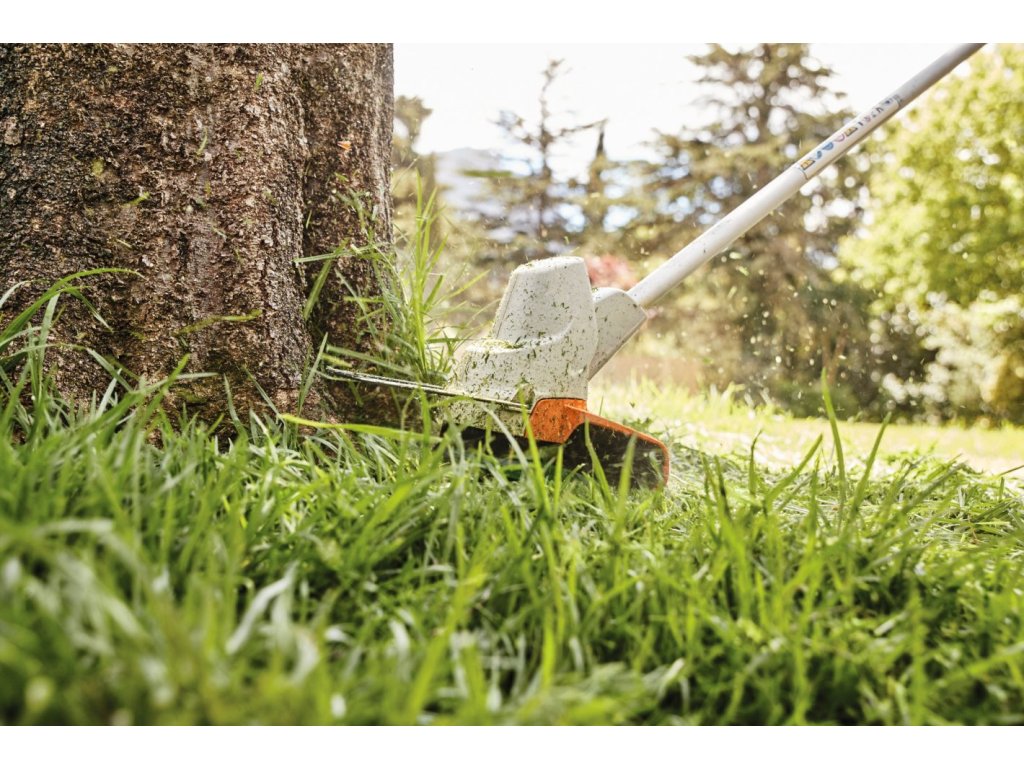 Pre presné a šetrné kosenie okolo rastlín, ako sú stromy a kríky, a predmetov slúži výškovo nastaviteľný ochranný kryt.