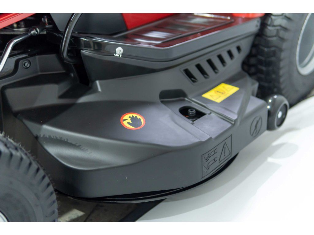 Traktor je vybavený dvoma nožmi a pracovným záberom 86 cm, čo prináša rovnomerný strih a spoľahlivý zber pokosenej trávy. Silný prúd vzduchu pomáha efektívne dopravovať trávu do zberného koša s objemom 245 litrov, takže sa znižuje potreba častého vyprázdňovania. Výšku kosenia je možné nastaviť v 7 polohách v rozsahu 30 až 90 mm, takže si jednoducho prispôsobíte výsledok podľa stavu trávnika.